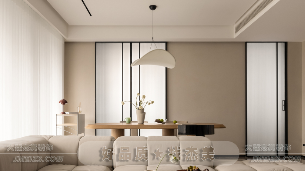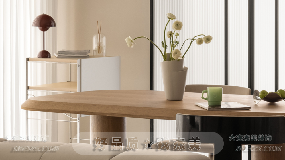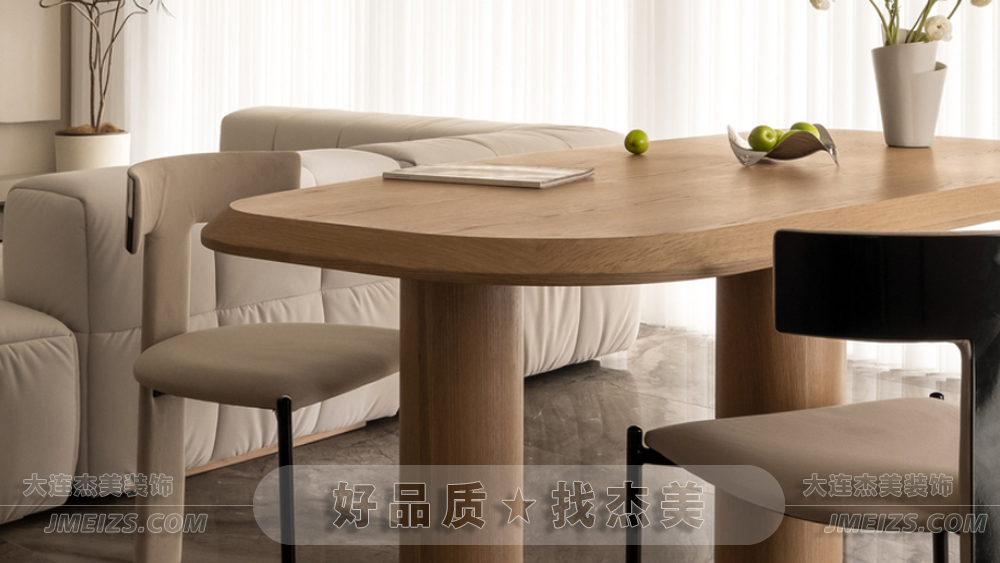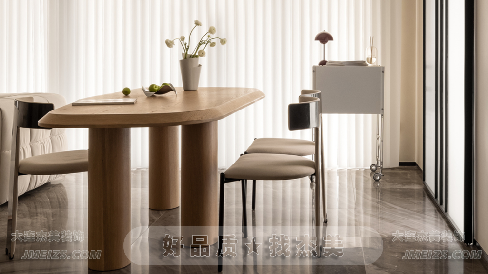 餐桌與客廳茶幾的簡(jiǎn)約幾何呼應(yīng),構(gòu)筑自然靈動(dòng)的用餐氛圍。