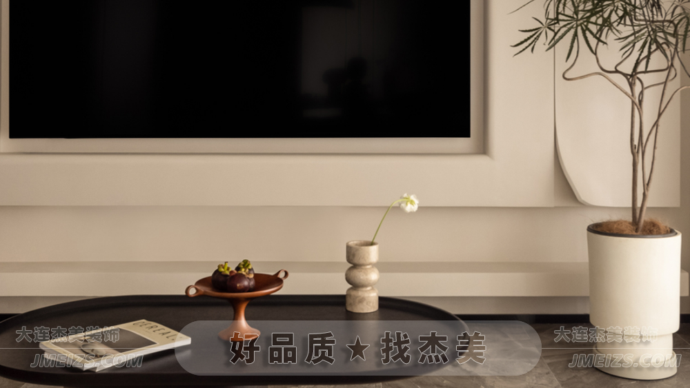 客廳旨在創(chuàng)造溫馨自由的家庭氛圍,同時(shí)也需適用于業(yè)主日常生活的種種功能。米白色藝術(shù)漆和同色系沙發(fā),色彩相近質(zhì)感相異,在對(duì)立統(tǒng)一中創(chuàng)造自然和諧。