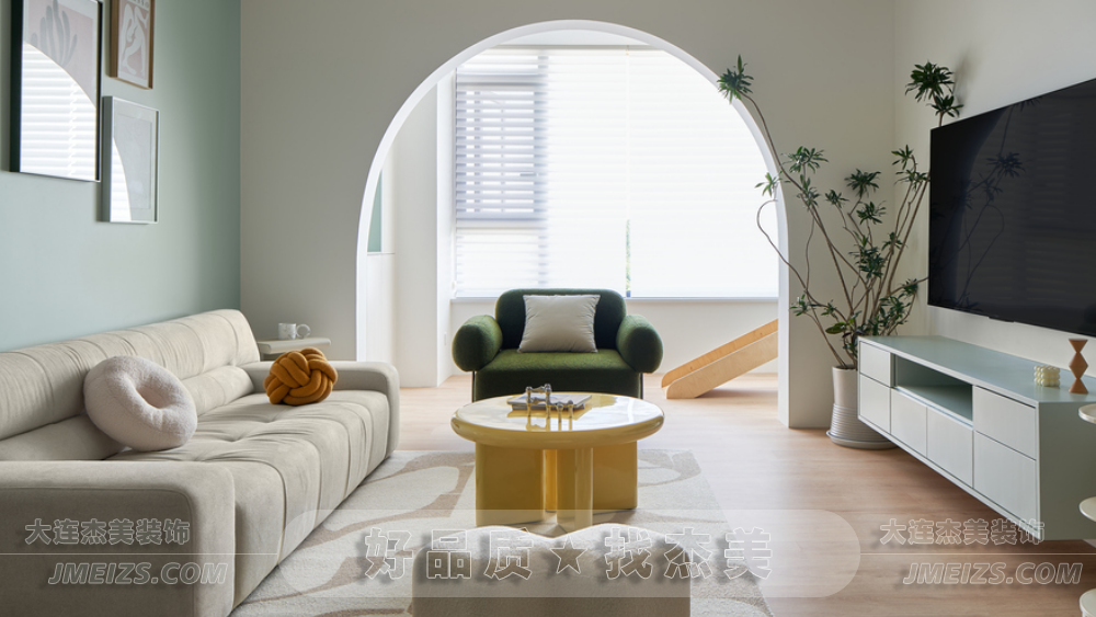 陽光透過窗戶灑進(jìn)客廳,溫暖的光線在薄荷綠的墻面上投下柔和的陰影,讓整個(gè)空間仿佛沐浴在清涼的夏日風(fēng)中。