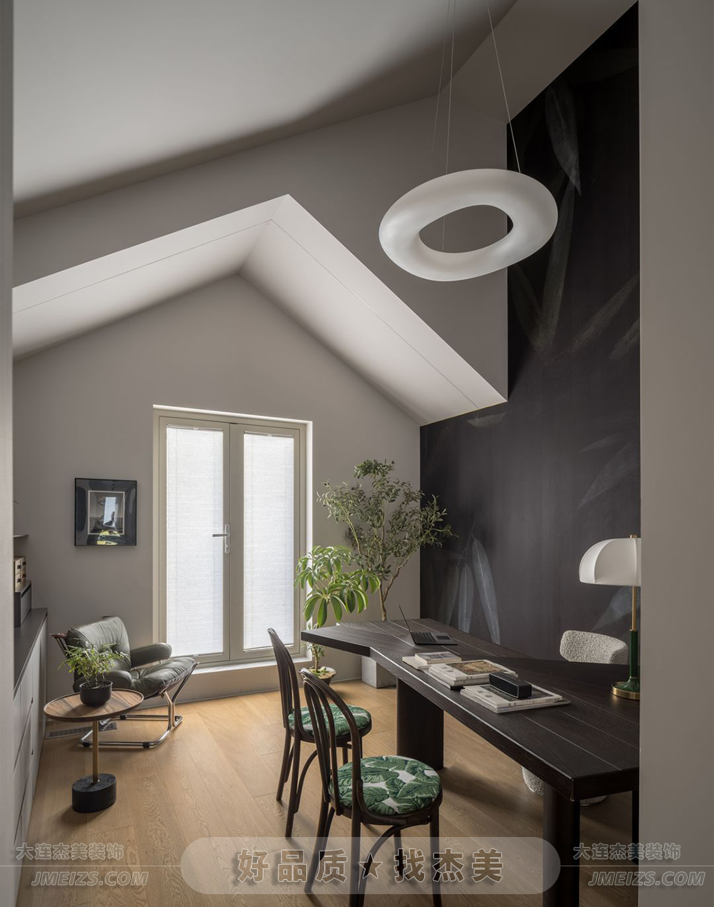 書(shū)房的設(shè)計(jì)充分考慮了空間的采光問(wèn)題,頂面結(jié)構(gòu)完全還原了原始的建筑結(jié)構(gòu),以保證充足的自然光。