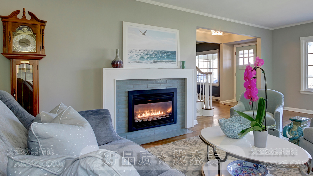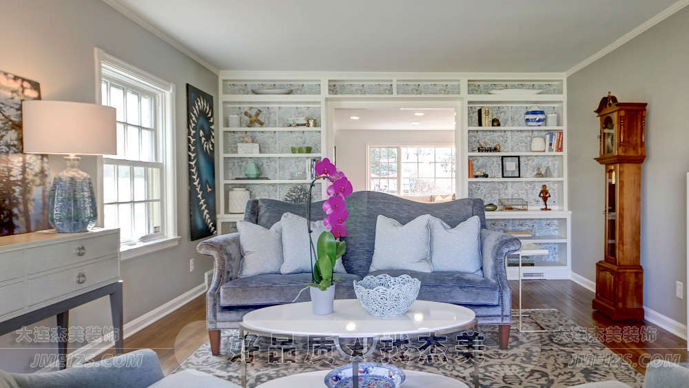 融合傳統(tǒng)與現(xiàn)代風(fēng)格的開放式客廳設(shè)計(jì),大連杰美裝飾設(shè)計(jì)師通過材質(zhì)和細(xì)節(jié)處理巧妙打造舒適優(yōu)雅的起居空間。