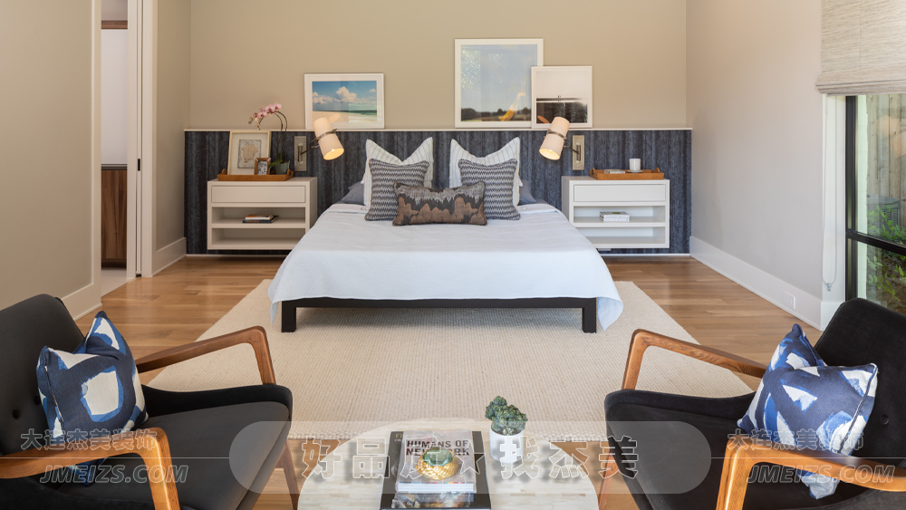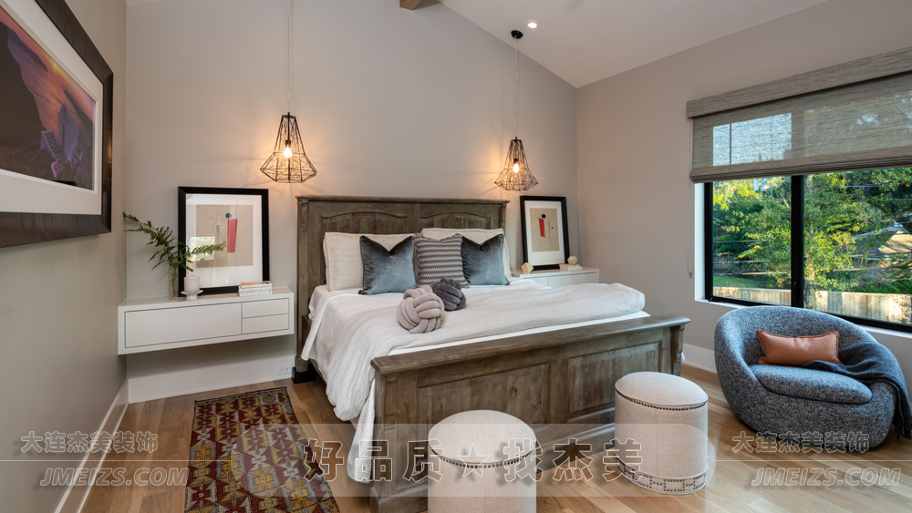 杰美裝飾以暖白色調(diào)為整個臥室?guī)砹艘环N溫馨而又舒適的感覺。這種顏色不僅能夠放松身心,還能為人們帶來一種寧靜和平的感覺。