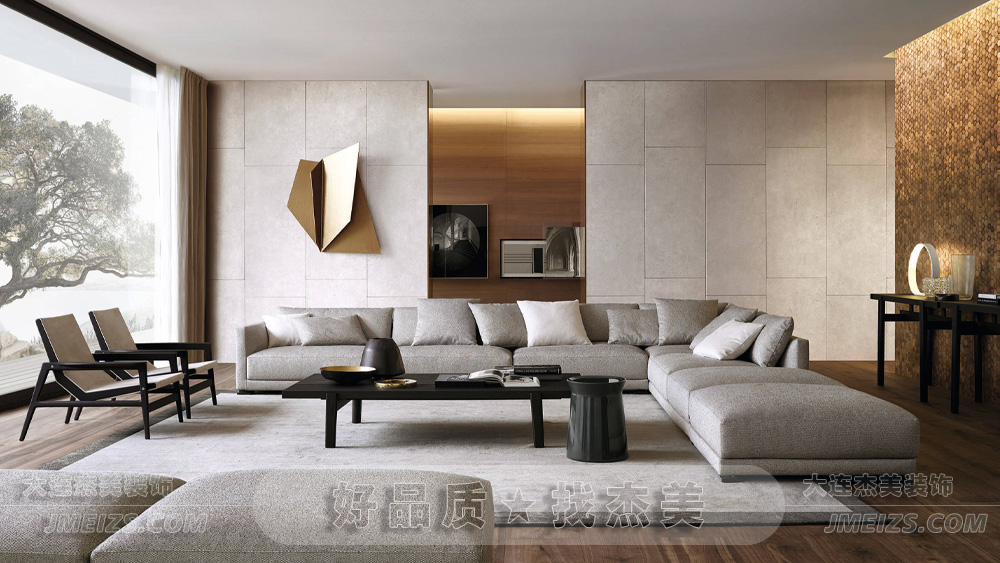 沙發(fā)的設(shè)計(jì)簡約而不簡單,線條流暢,尺度寬敞,