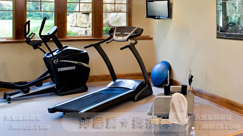 健身房的角落擺放著幾個(gè)簡(jiǎn)單的器械,