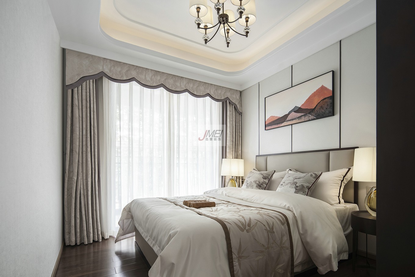 主臥之中,嚴(yán)整的格局與平和的調(diào)性完美融合,渾然一體。配合白瓷之溫潤、玉石之靈秀、流蘇之靈動(dòng)等精巧文物,滿室風(fēng)雅,彰顯著大家風(fēng)范。